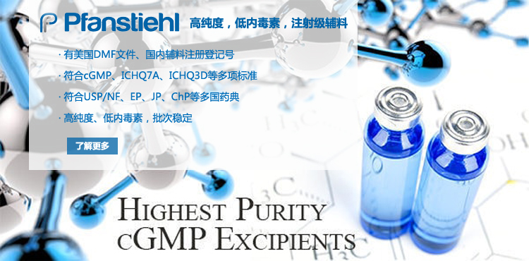 “熱烈祝賀Pfanstiehl的注射級甘氨酸Glycine(G-140)喜獲CDE登記號F20250000403, 這是Pfanstiehl產品獲得的第18個CDE登記號!”甘氨酸在醫藥輔料制劑中應用廣泛,, 可作為緩沖劑,增溶劑,穩定劑等,具有諸多優勢。Pfanstiehl秉承一貫高品質理念,為滿足全球生物制藥行業對于高品質甘氨酸的需求,隆重推出的注射級甘氨酸Glycine (G-140), 具有超高純度,超低內毒素,超低金屬殘留的特點,單獨檢測29種金屬離子,并且新增DNA,RNA,DNA酶,RNA酶和脂肪酶,亞硝酸鹽等多項質量指標的檢測,符合多國藥典規定(USP, EP, BP, JPE, ChP),可用于生物治療性藥物和疫苗的生產。產品信息:· 產品名稱:Glycine, High Purity, Low Endotoxin, Low Metals, USP, EP, BP, JPE, ChP (G-140)· 中文名稱:甘氨酸· 分子式:C2H5NO2· 分子量:75.07 g / mol· CAS號:56-40-6· 產品貨號:G-140產品特點: · 超高純度,超低內毒素,超低微生物含量,超低金屬雜質殘留· 質量指標新增DNA,RNA,DNA酶,RNA酶,脂肪酶和亞硝酸鹽檢測· 符合多國藥典:USP, EP, BP, JPE, ChP· 符合ICH Q3D標準· 符合GMP標準· 已獲DMF和CDE登記號 產品應用:· 緩沖劑· 穩定劑· 增溶劑如果您對Pfanstiehl注射級別Glycine G-140感興趣,歡迎聯系Pfanstiehl 中國區代理商北京西美杰科技有限公司獲得如下詳細的產品概況說明文件和測試樣品。Pfanstiehl Inc.最新產品系列如下,歡迎聯系北京西美杰科技有限公司獲取100g裝免費樣品。北京西美杰科技有限公司為Pfanstiehl中國代理,為客戶提供完善的技術支持與售后服務。歡迎撥打西美杰客服電話400-050-4006或者登陸網站www_xmjsci_com.nqudho.cn了解更多信息。 更多>
